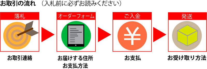 ご入札をいただいた場合には本取引ガイドの内容、ならびにオークションページ記載の内容にご同意いただけたものとさせていただきます。